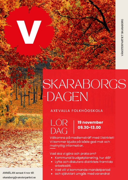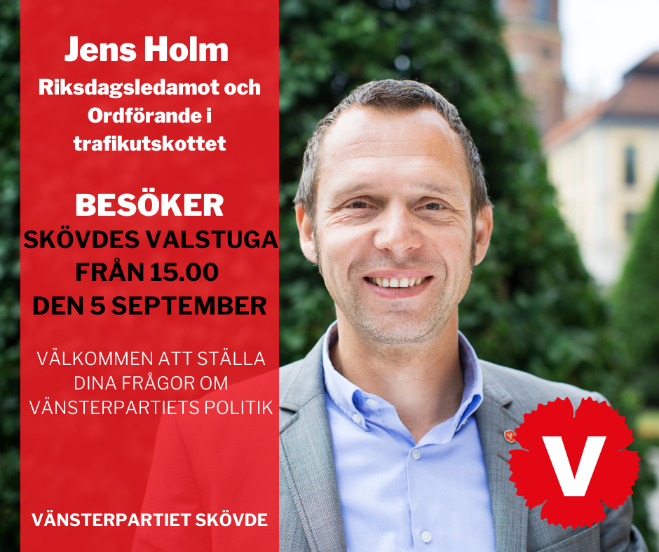 Vi får Besök av Elin Segerlind, Vänsterpartiets miljö och klimattalesperson. Under tiden Elin är här kommer hon att besöka Da Capoutbildningen men även finnas vid Mariestads Valstuga på nya torget under senare förmiddag. Kom gärna förbi under onsdagen och ställ dina frågor till Riksdagsledamoten Elin, även Jessica Thunander vår riksdagsledamot från Floby finns på plats.