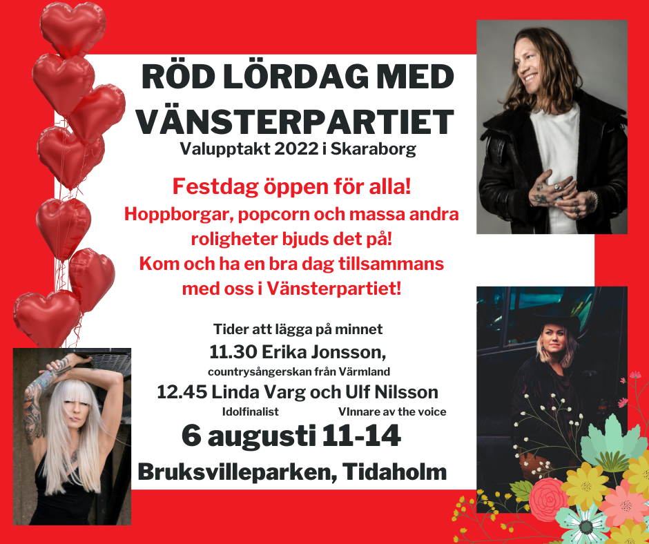 Tidaholm 11-14 6 augusti Vi ses för en härligt festlig dag tillsammans! Det blir musik, tal, popcorn, hoppborgar, konstprojekt och mkt mer! Kom till Bruksvilleparken den 6 augusti 11-14